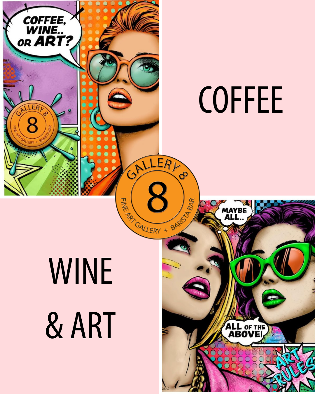 Try our Gallery 8 Curated cheese board & Surround yourself with art.”