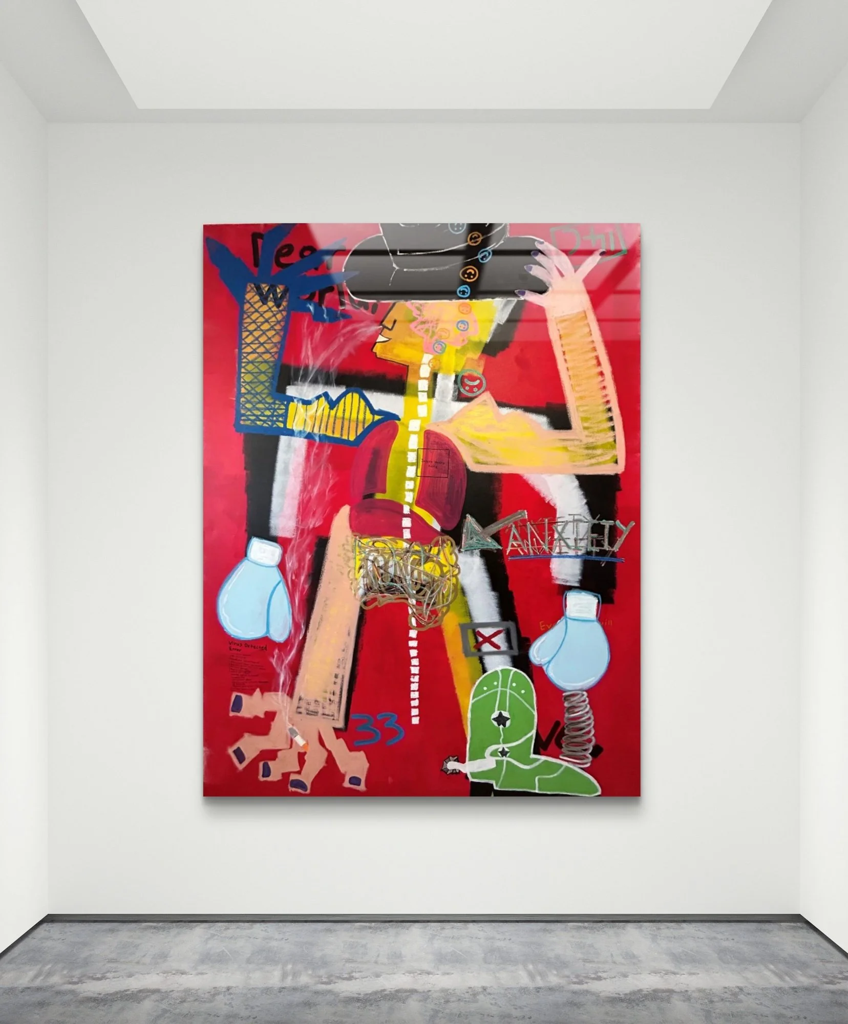 between toes and a spring supported by boxing gloves symbolizes the uncomfortable and often futile attempts to resolve persistent issues.