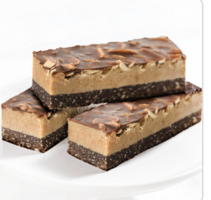 A thick layer of delicious almond butter paired with a chewy chocolate base and a chocolate coated almond topping. Vegan, gluten free & refined sugar free. (Allergens - Tree nuts )